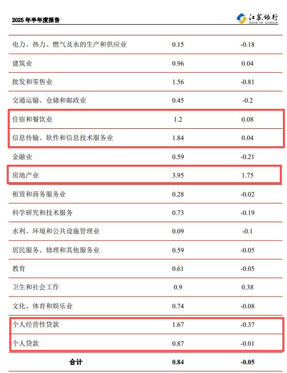 江苏银行近年来不良贷款有所增加,不过不良贷款率则有所下滑,而从2025年中报来看,房地产业不良贷款上升较为明显,不良贷款率达到3.95%,是需要引起高度重视的。