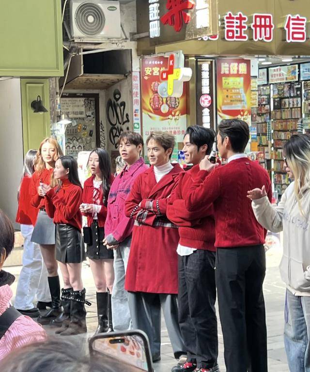 当天他们都穿着红色的衣服,真的颇有新年的喜庆氛围,虽然当时的气温不高,但是仍有不少小花都穿着短裙,难怪有网民称,隔着屏幕都替她们觉得冷。